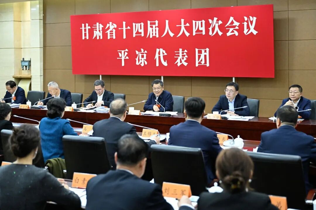 省人大代表、省委副书记、省长任振鹤1月27日下午来到省十四届人大四次会议平凉代表团,与代表们一同审议政府工作报告、审查甘肃省国民经济和社会发展第十五个五年规划纲要草案等。他强调,要全面深刻准确领会和把握党的二十届四中全会的战略部署,深入贯彻落实习近平总书记视察甘肃重要讲话重要指示精神,以新发展理念为引领,以经济建设为中心,以推动高质量发展为主题,紧紧聚焦经济社会发展各领域协同发力,不断拓展现代化发展空间。