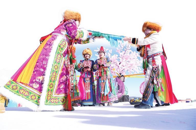 起伏的草原栈道上,游客与马鹿互动,享受着奇妙旅程;冰雪互动体验区里,冰雪爱好者踏雪嬉玩,体验着冰雪运动的独特魅力;在民歌互动、知识问答区,游客通过参与感受地方风情、赢取雪币……
