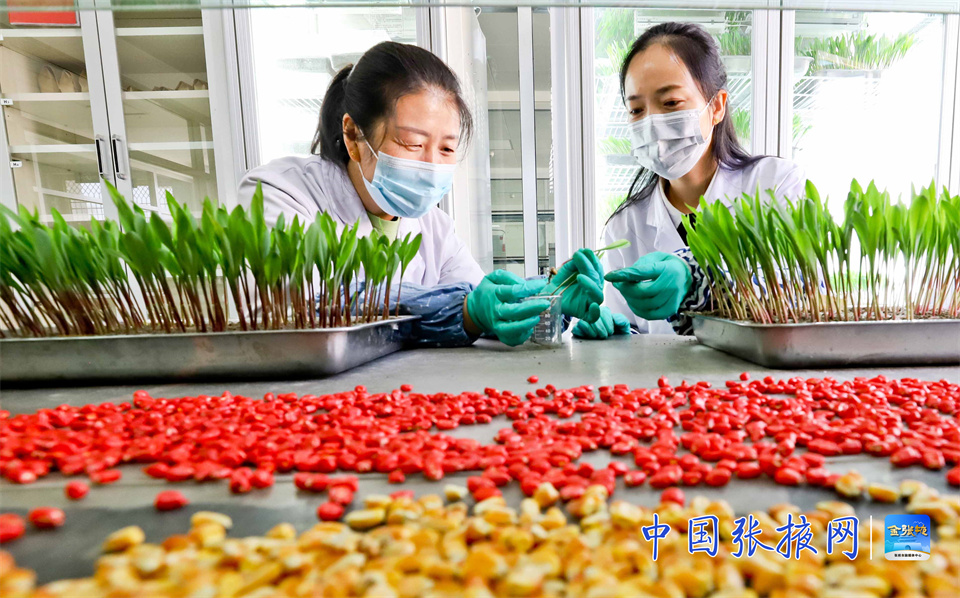 甘州区积极鼓励企业科技创新,支持玉米种子企业与国内外科研院所、高等院校加强合作,投资建成登海种业西北科研中心等玉米种业科创平台3个、德光农业玉米研究所等研发机构9家,张掖市金葵花种业公司成立甘肃省首个中国工程院外籍院士工作站,登海种业首次尝试在北方建设高标准智能人工气候实验室,实现在北方加代种植试验,推动“北繁北扩”持续迈进,玉米制种产业取得专利等科技成果300多件,培育高新技术企业7家。先后培育国审、省审玉米新品种331个,占全市研发品种的53.2%;制定行业技术标准20项,12家种子企业建立了南繁基地和区域试验基地,玉米种子平均纯度、发芽率、良种覆盖率分别达97.8%、95%、95%以上。
