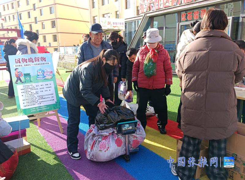 中国张掖网肃南讯 为推动生活垃圾源头减量和资源循环利用,助力打造节约型,环保型社区,连日来,肃南县红湾寺镇裕兴社区联合邮政公司开展了“践行绿色低碳,共建循环社区”旧衣换物绿色回收兑换活动。温馨的活动吸引了社区居民踊跃参与,让环保新风尚在社区悄然传递。