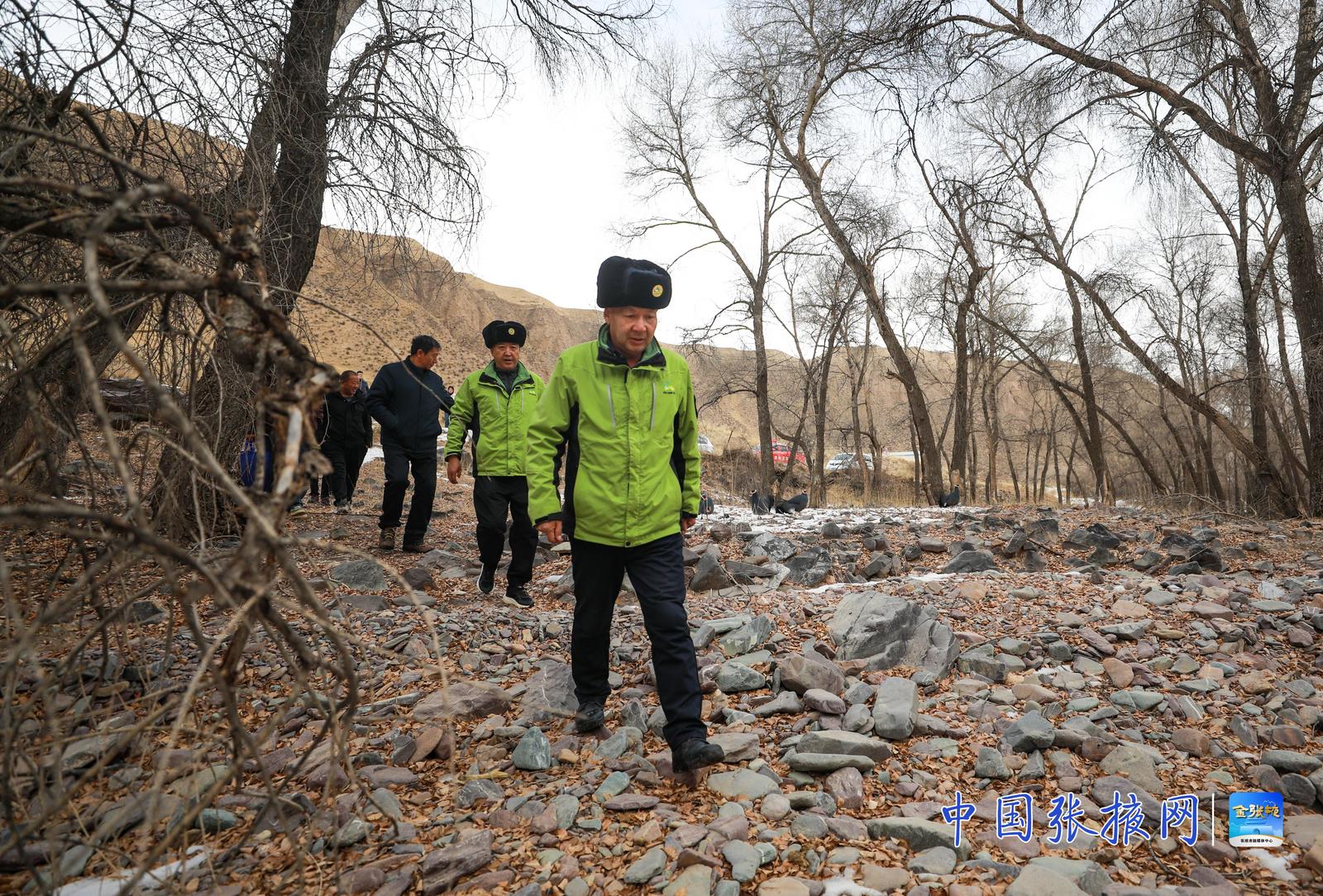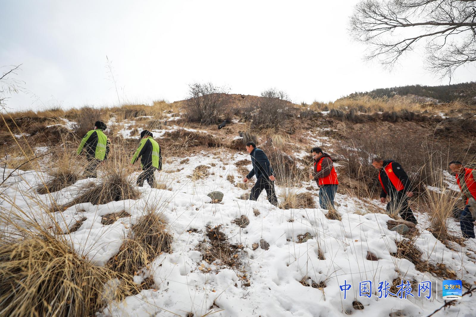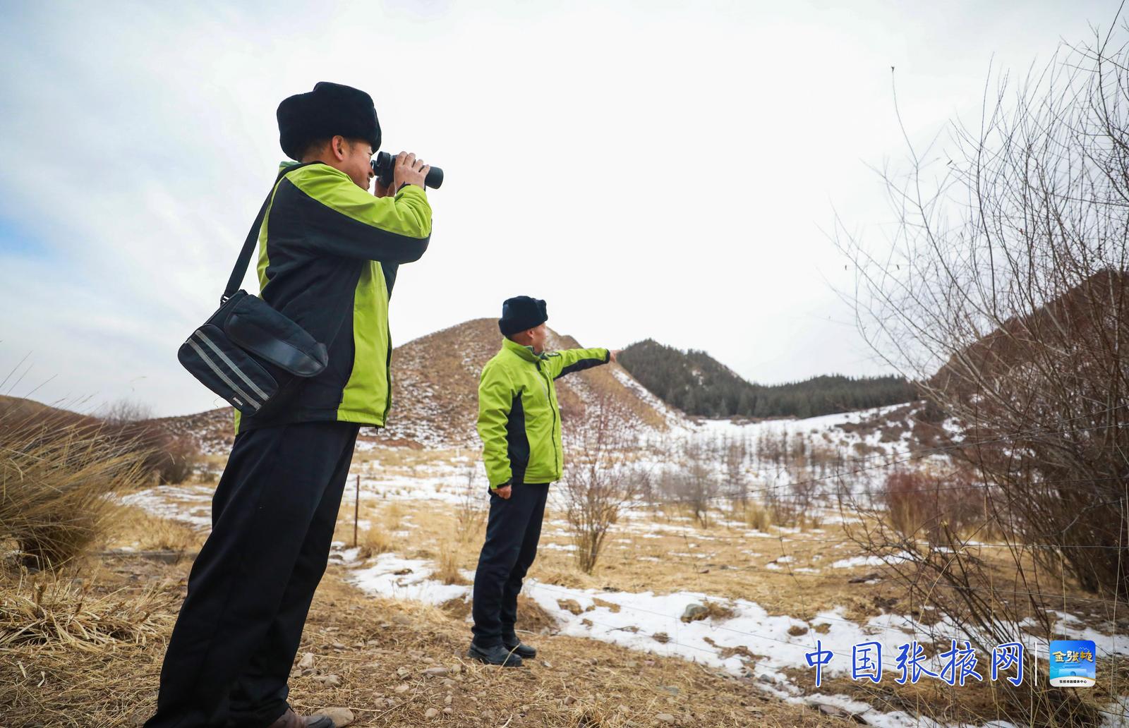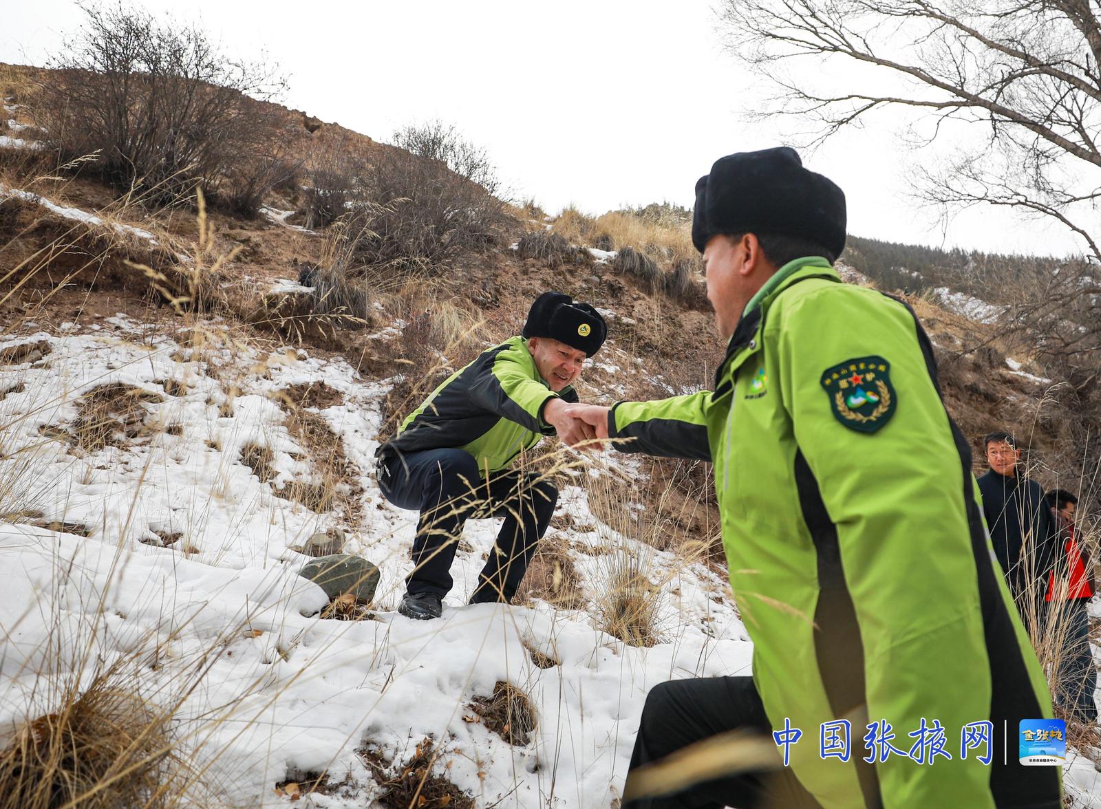 中国张掖网讯 近日,甘肃祁连山国家级自然保护区隆畅河保护站中部资源管护站的工作人员,与肃南县大河乡老虎沟村的生态管护员共同深入保护区,开展日常联合巡查。寒风凛冽中,他们穿行于山林沟壑,检查植被、监测野生动物踪迹、排查潜在隐患,以实际行动守护着祁连山的一草一木。