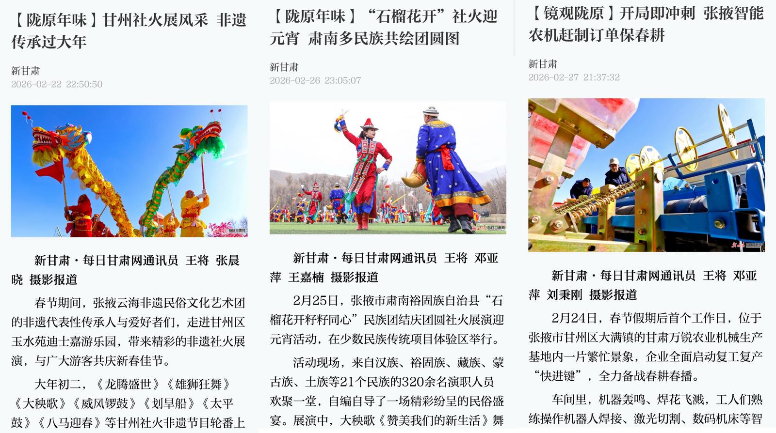 《甘肃新闻》报道民乐县村民们以“姚寨子耍龙”传统民俗演练,拉开新春喜庆序幕。