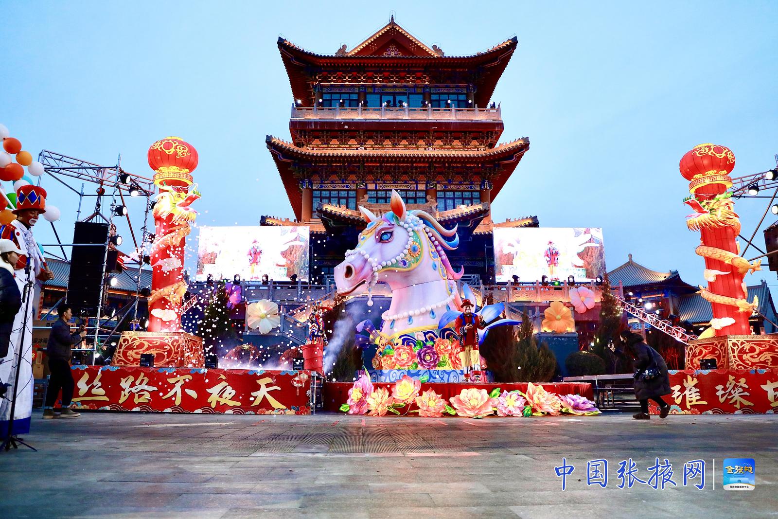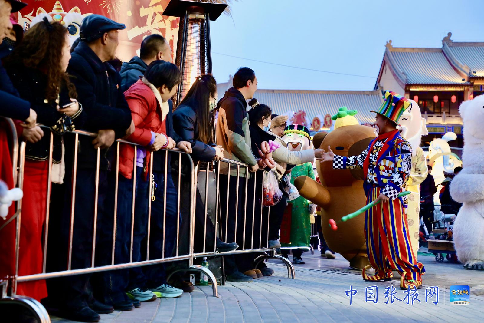 张掖市西部风情文旅发展有限责任公司总经理肖玉霞在活动现场介绍:“我们精心策划推出社火、非遗火技、滑稽互动、天女散花等系列活动,力求让传统文化‘活’起来、年味‘浓’起来。”