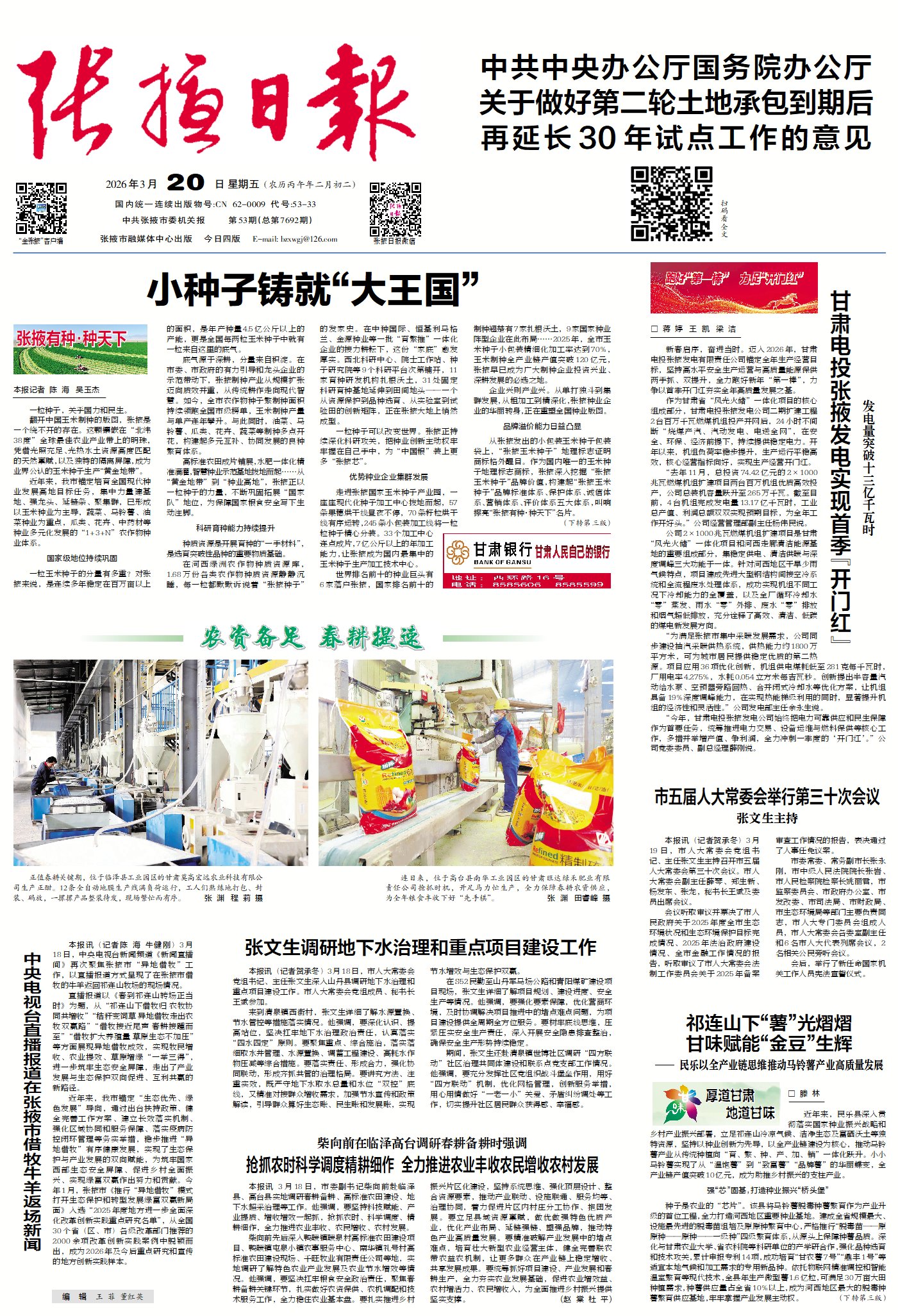 3月20日《张掖日报》