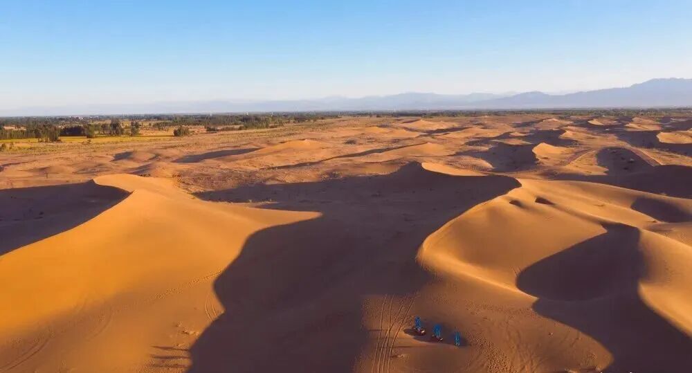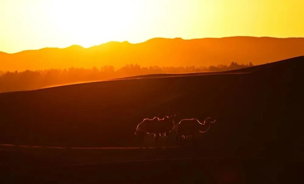 日出时分,朝阳为天地镀上暖橙,驼队踏着柔光缓缓前行,勾勒出丝路独有的浪漫剪影。白日里,越野车轰鸣冲顶,沙雾漫天,点燃游客的热血;极目远眺,沙海与绿洲交织,尽显生态之美。