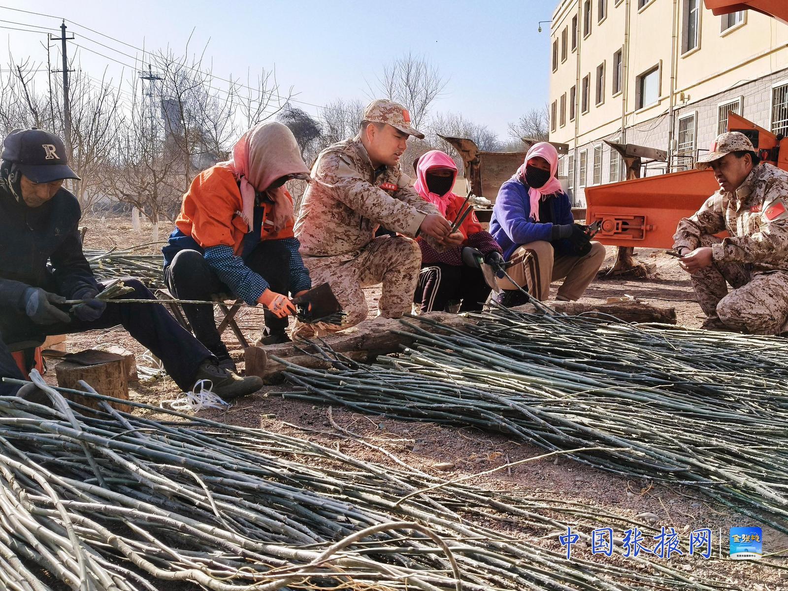 在林场育苗区,工人们正埋头忙碌,仔细修剪枝条、制作造林插穗。大家严格遵照林业技术标准规范操作,仔细把控每一根插穗的长度与切口平整度,现场技术人员全程指导,耐心讲解剪穗技巧、储存防护等注意事项。“我们挑选的都是长势健壮、没有病虫害的优质枝条,新疆杨插穗、沙枣插穗长度都严格控制在18到20厘米。剪好之后统一捆扎堆放,这样能最大程度保证苗木成活率,为今年的造林工作备足优质‘合格苗’。”技术员郭含义说。