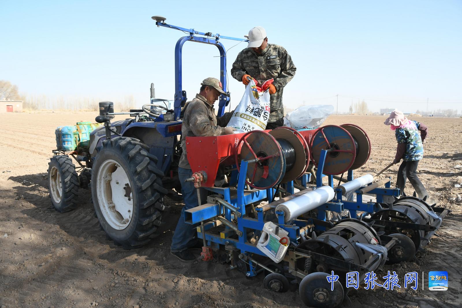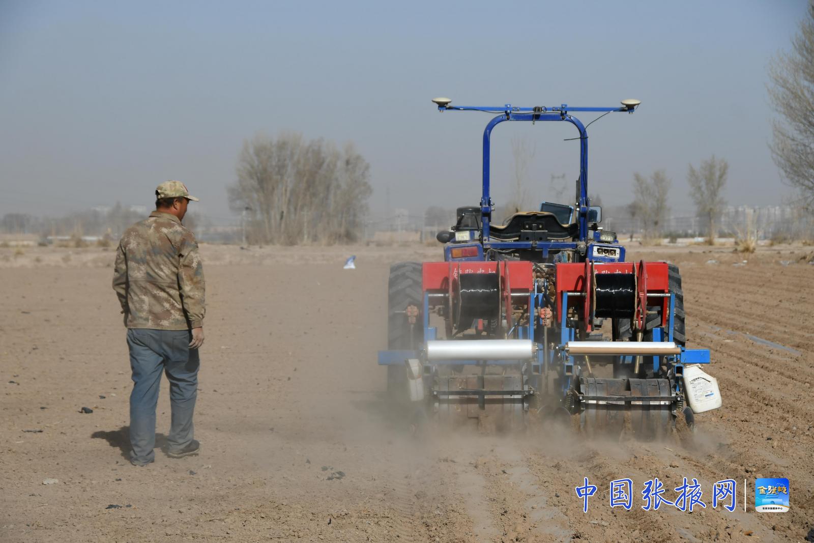 甘肃华瑞恒祥种业有限公司生产部经理姚蘅峰介绍,公司今年在甘州区的种植面积大概23万亩,其中沙井镇东四村的基地就有7千多亩地。眼下正在进行整地、覆膜、铺设滴灌带、施肥等活儿,为四月中旬播种做足准备。