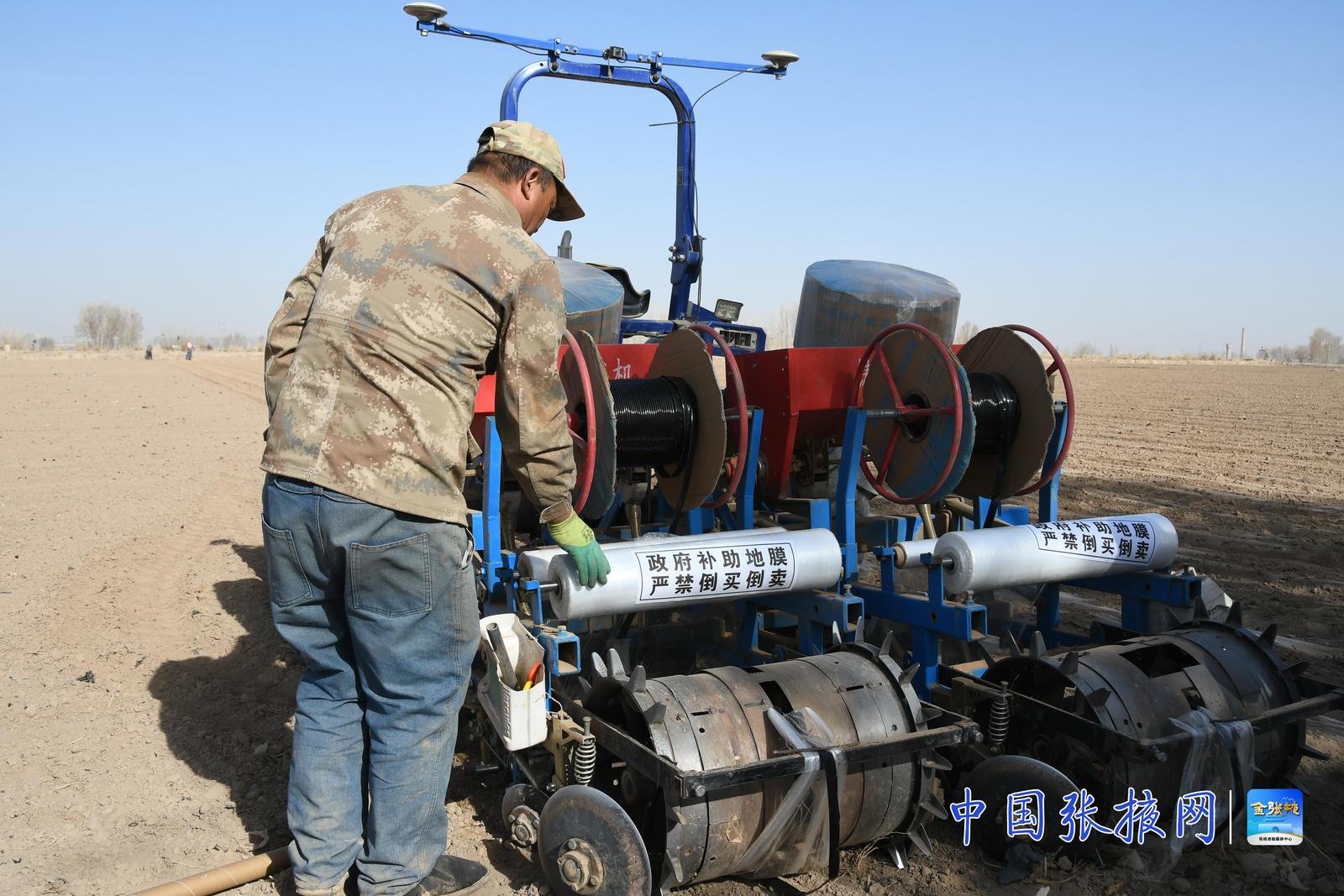 中国张掖网讯 进入四月,地气回暖,甘州区沙井镇的田野上人来人往,农机轰鸣。作为全市制种玉米“黄金产区”,这里的农户抢抓农时,用科技手段给土地“穿衣裳”——铺膜保墒,为今年的丰收按下“启动键”。