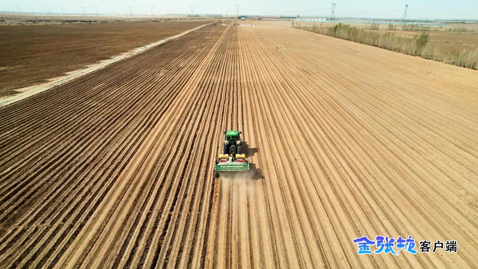 时下正值马铃薯播种黄金时节,甘州区广袤田野间机声隆隆。数台大型马铃薯播种机按照预设路线来回穿梭,多道工序一次性完成,整齐划一的垄线在田野间延伸。