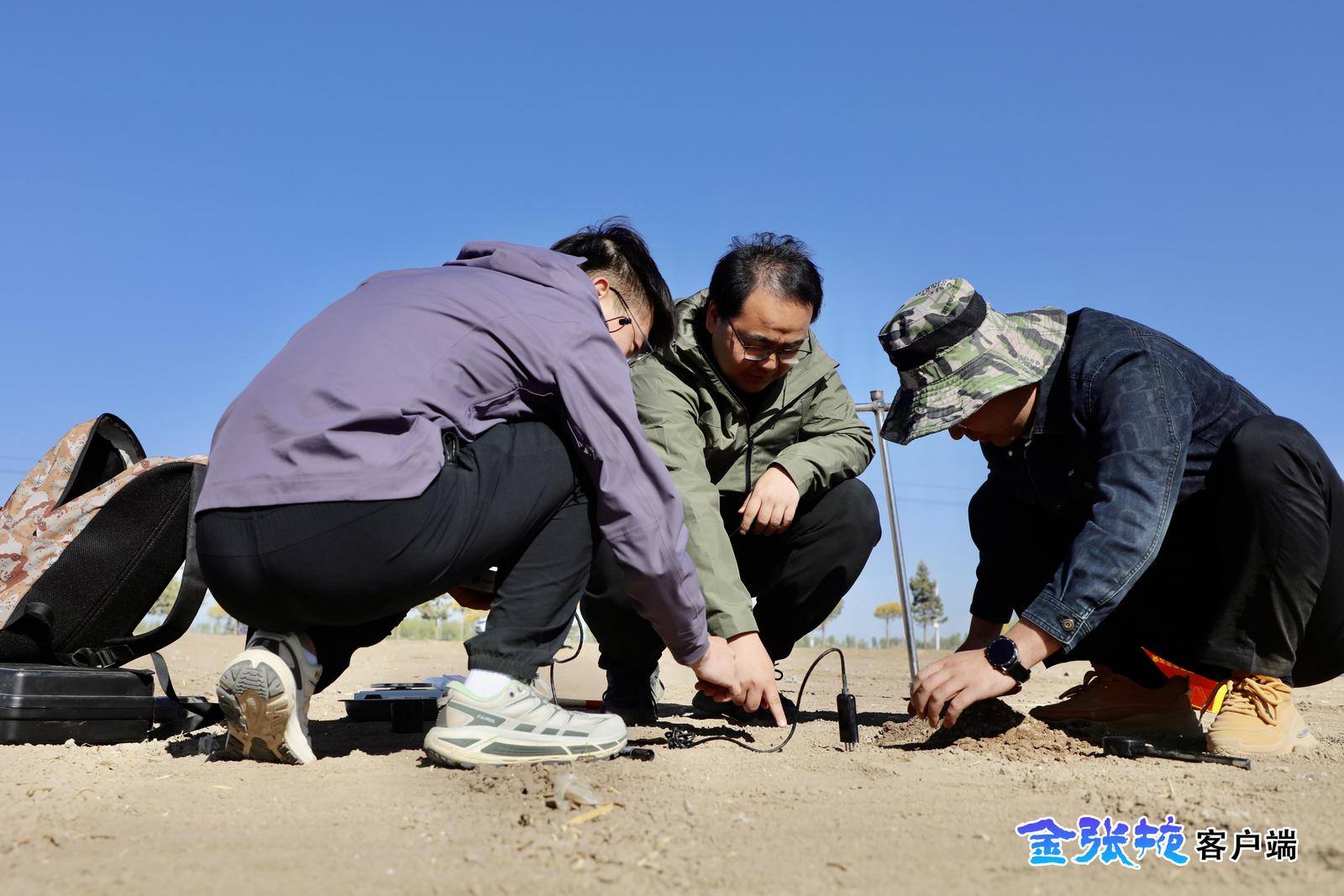 正当播种机在田间大显身手时,另一群忙碌的身影也在田垄间起伏跃动——张掖市农业机械化技术推广站和甘肃农业大学的工作人员三五成群,俯身观察,利用土壤坚实度仪、温湿度测定仪、环刀、电子秤等仪器,完成土壤坚实度、容重、含水率的现场测定。他们还将采样带回实验室,进行土壤粒径与理化性质的分析。这些看似枯燥的数据,恰恰是精量播种的“智慧密码”。