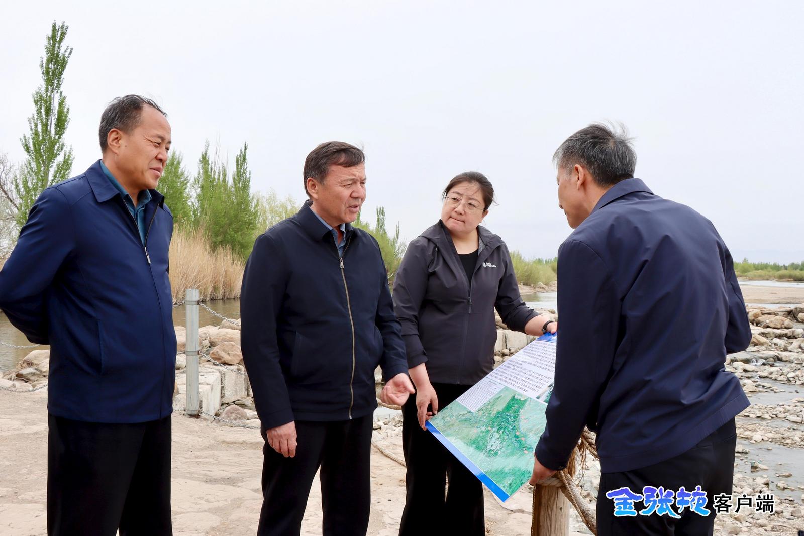 中国张掖网讯 4月26日,张掖市委副书记、市长叶尔波力·孜汗在甘州区、临泽县调研黑河调水工作时强调,要深入学习贯彻习近平总书记关于治水的重要论述,坚决扛牢中游责任,高效落实分水任务,全面筑牢黑河流域生态安全防线。